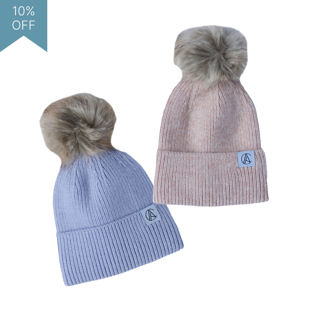 Satin Lined Pom Knit Beanie Bundle-MPL