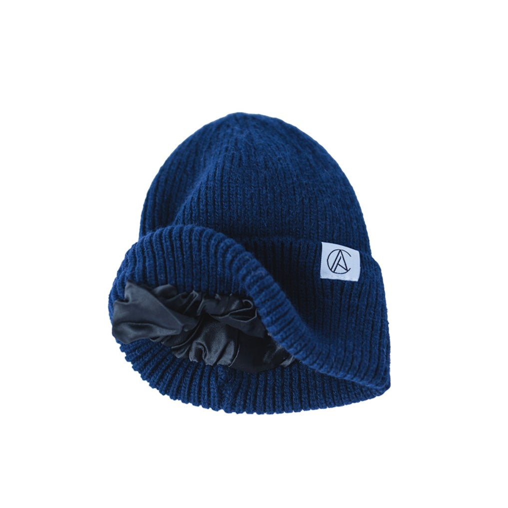 Satin Lined Flat Knit Beanie-Navy