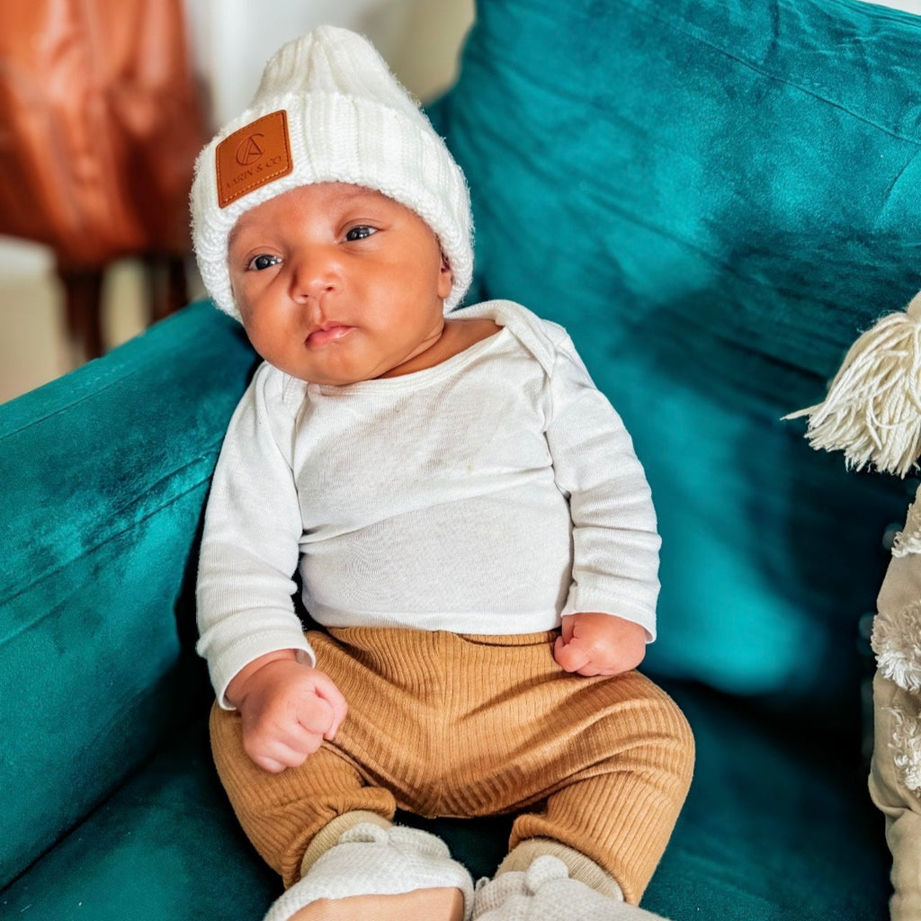 Our satin-lined ribbed knit beanies combine plush, cold-weather warmth with gentle hair protection. The luxe outer knit keeps your baby warm and stylish, while the silky satin lining prevents hair dryness and frizz that leads to breakage and damage during the colder seasons. Perfect for playtime, strolls, or chilly outings.