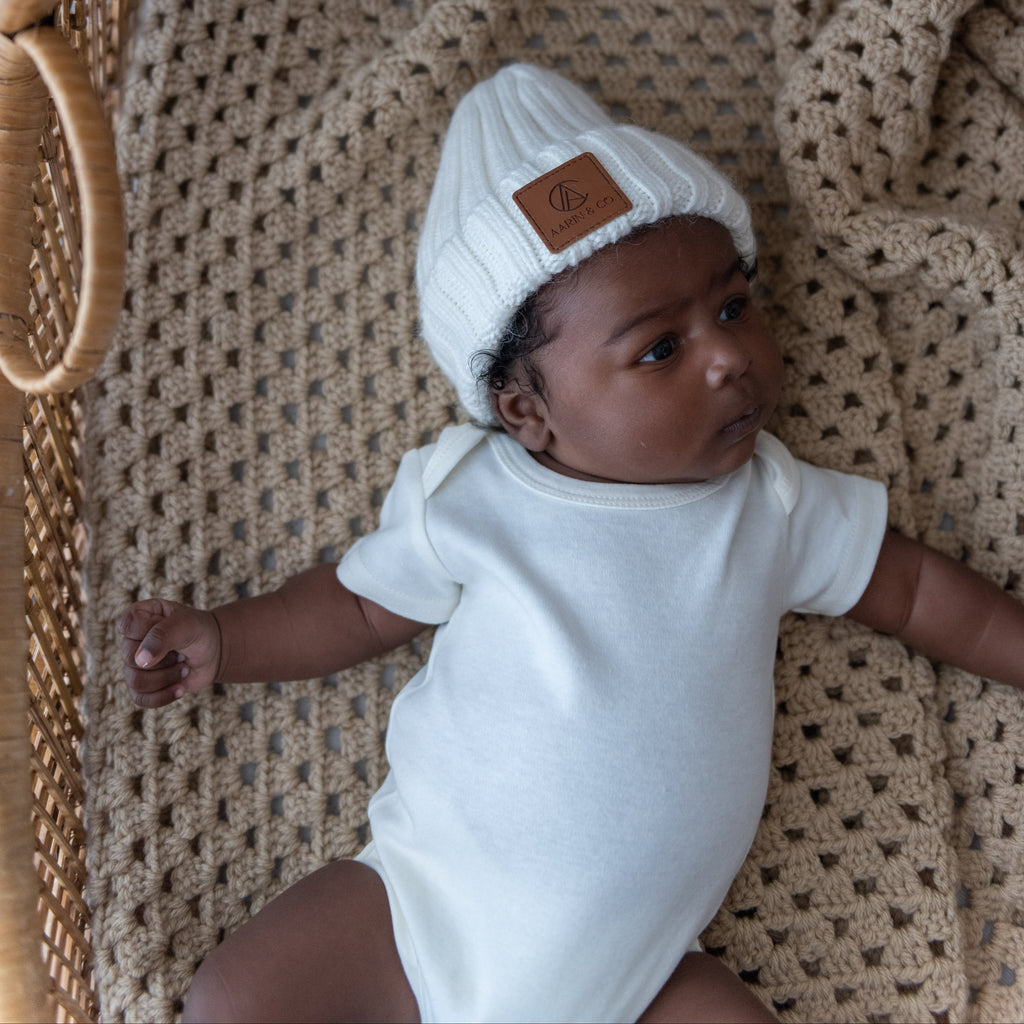 Our satin-lined ribbed knit beanies combine plush, cold-weather warmth with gentle hair protection. The luxe outer knit keeps your baby warm and stylish, while the silky satin lining prevents hair dryness and frizz that leads to breakage and damage during the colder seasons. Perfect for playtime, strolls, or chilly outings.