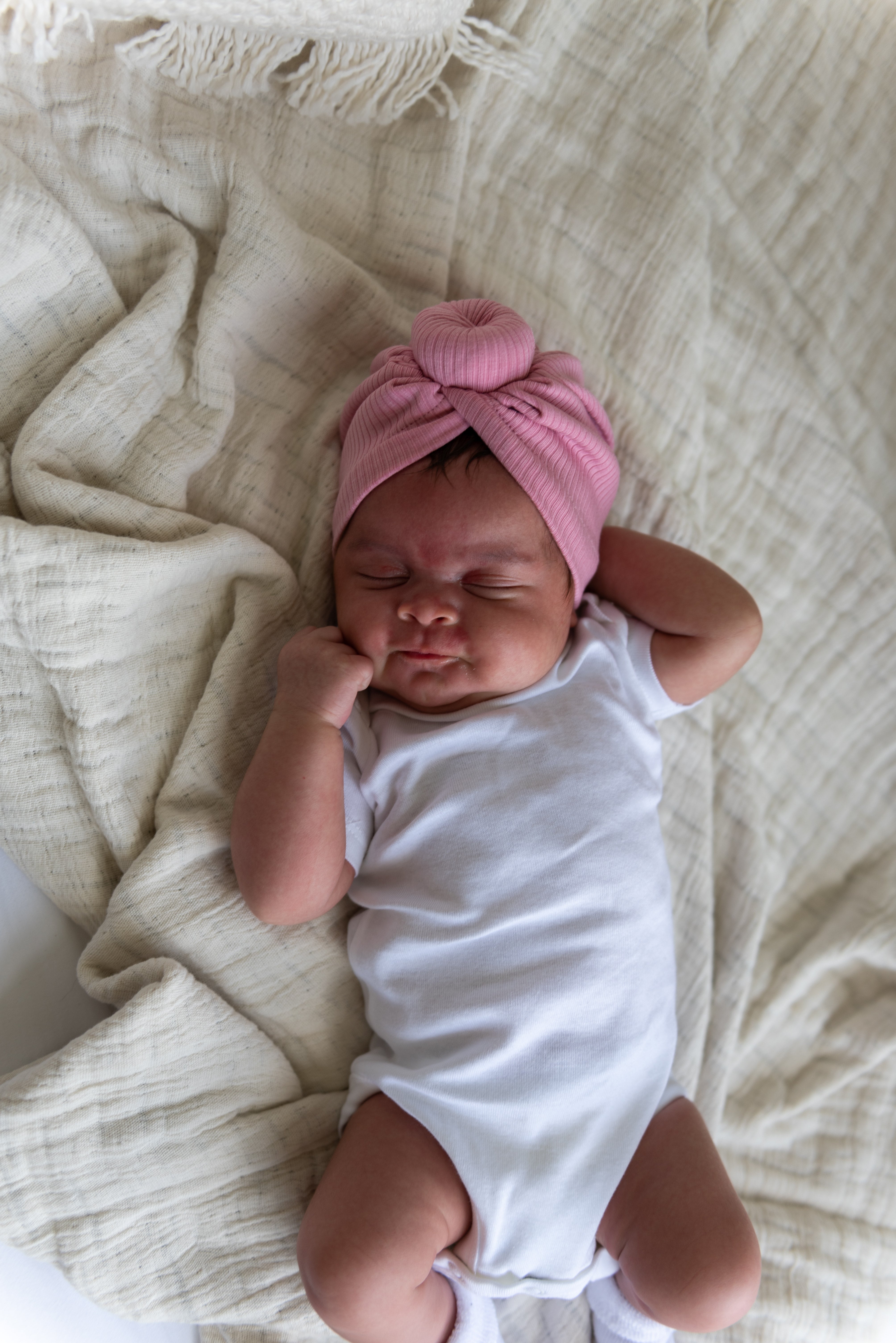 Note: The amount of hair your baby has may also affect sizing/fit. Please note that sizing is an estimate and every baby is different. When in doubt, we recommend sizing up!